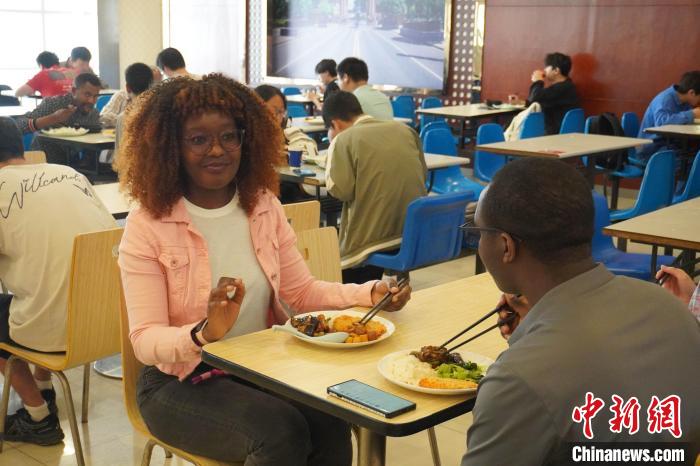 2025年4月,梅里琳·穆塞在西南交通大學(xué)的食堂。 黃娜 攝