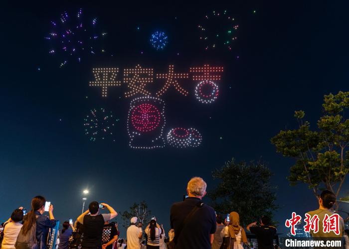 香港旅游發(fā)展局5月1日晚以天后誕、譚公誕及長洲太平清醮三大傳統(tǒng)節(jié)慶為主題,在灣仔海濱舉辦無人機表演。香港特色民俗“搶包山”比賽場景在夜空出現(xiàn),“搶包山”搶上了天,引得圍觀人群贊嘆。