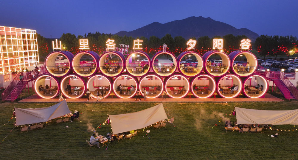 5月4日,游客在山東省臨沂市郯城縣醉東風(fēng)鄉(xiāng)村藝棧游覽。