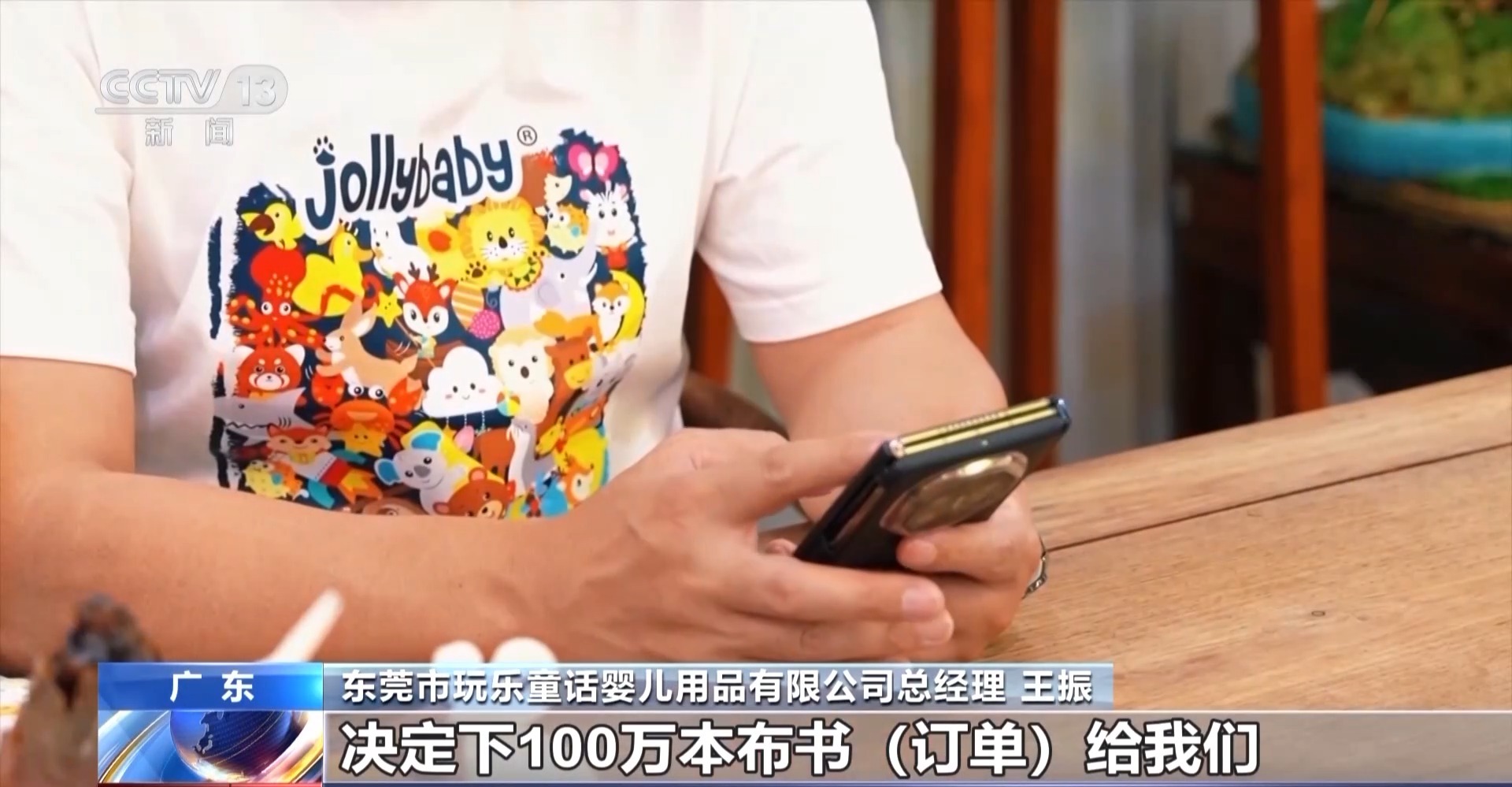 東莞市玩樂童話嬰兒用品有限公司總經(jīng)理 王振:到晚上12點(diǎn)多他們就發(fā)信息給我,決定在我們這里下100萬本布書訂單,當(dāng)時我們大家非常非常興奮。