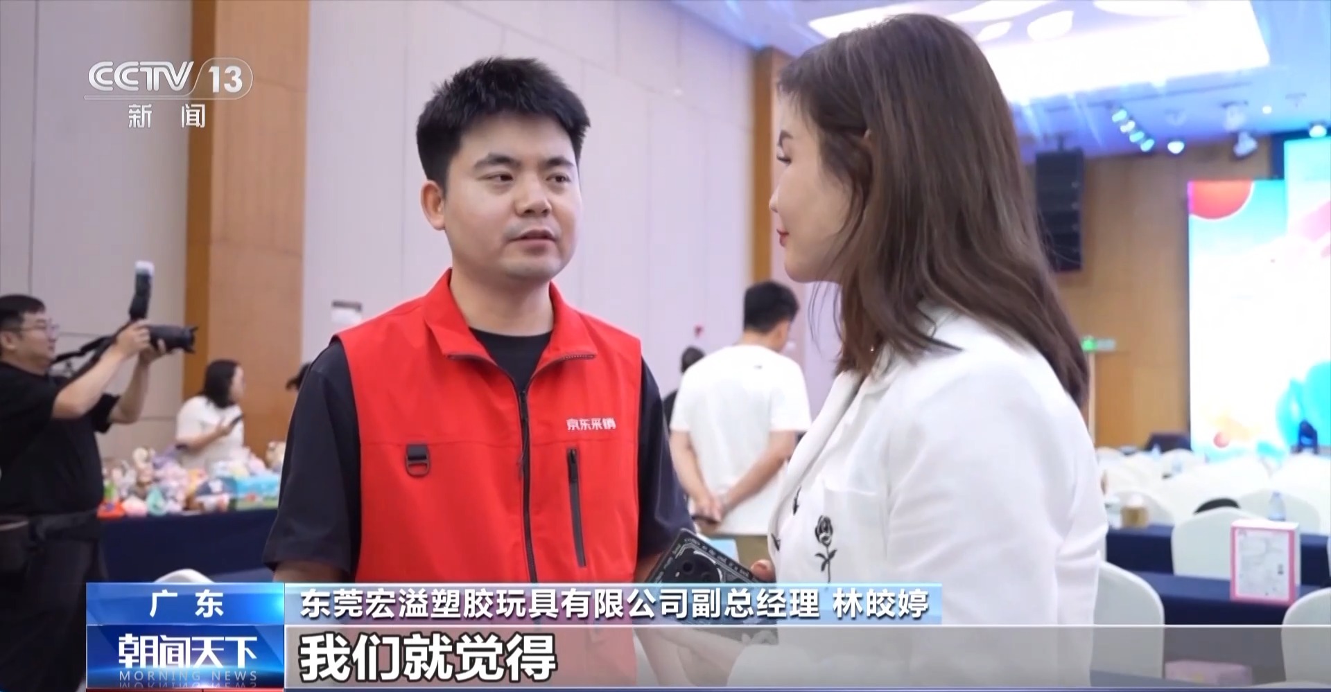 東莞宏溢塑膠玩具有限公司副總經(jīng)理 林皎婷:我們公司一直都是銷往美國為多,銷往美國的營業(yè)額已經(jīng)占了50%或以上,一直沒有做過內(nèi)銷。我們覺得我們可以借這個平臺跟京東對接完以后,看怎樣帶領(lǐng)我們做內(nèi)銷,把國內(nèi)的市場做好。