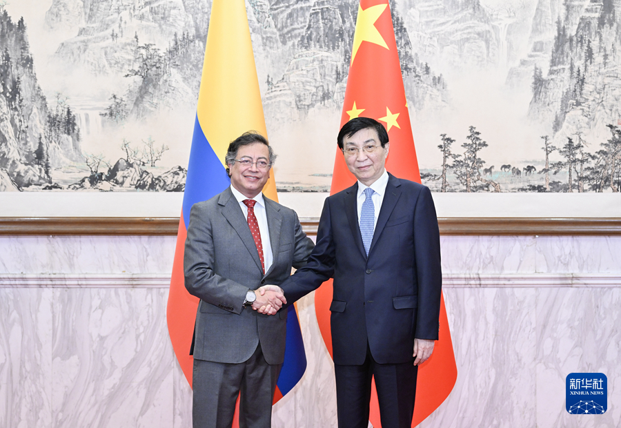 5月14日,中共中央政治局常委、全國政協主席王滬寧在北京會見來華出席中拉論壇第四屆部長級會議的哥倫比亞總統佩特羅。新華社記者 岳月偉 攝