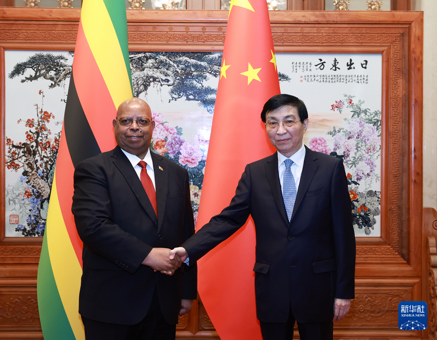 5月14日,中共中央政治局常委、全國政協主席王滬寧在北京會見津巴布韋眾議長穆登達。新華社記者 王曄 攝