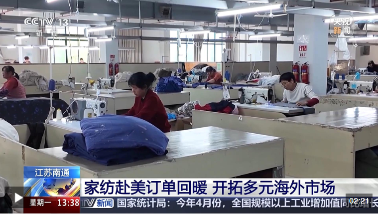 家紡產(chǎn)業(yè)是江蘇南通的傳統(tǒng)產(chǎn)業(yè)、特色產(chǎn)業(yè),年交易額達(dá)2500億元。在中美關(guān)稅政策調(diào)整之后,南通家紡產(chǎn)業(yè)赴美訂單逐漸恢復(fù)。