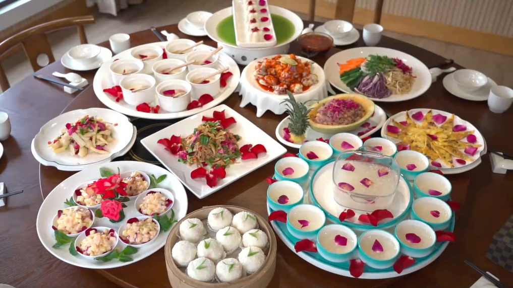 “今天很榮幸能吃到一桌都是用玫瑰花制作的菜肴,特別浪漫?!庇慰完愂缛A說(shuō),“每一道菜都非常精致,真的是一種‘舌尖上的享受’?!?/p>