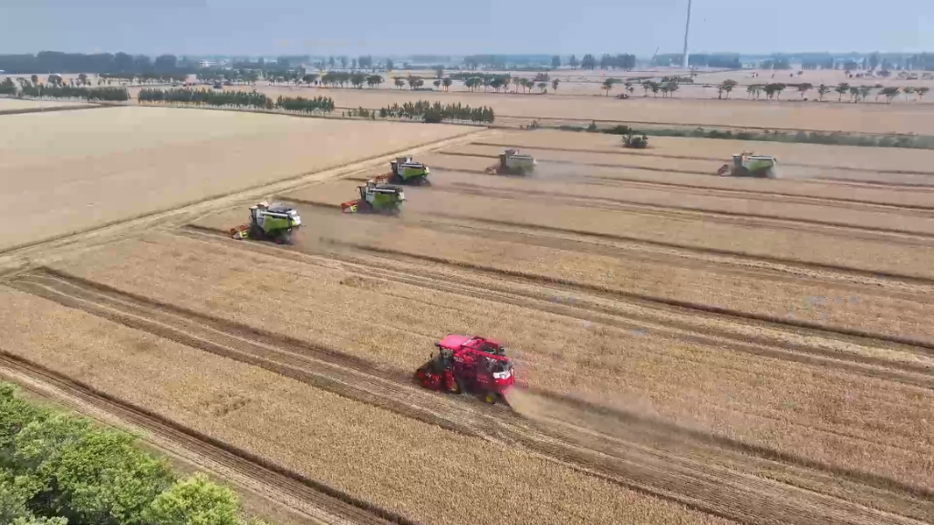 夏收順利,離不開智能收割機(jī)幫忙。記者在河南省南陽鄧州市腰店鎮(zhèn)看到,一望無垠的金色麥田里麥浪陣陣,機(jī)聲隆隆。6臺小麥聯(lián)合收割機(jī)正一字排開,在麥田中“過招”,比拼機(jī)收減損水平。這場機(jī)收減損技能大比武活動標(biāo)志著當(dāng)?shù)匦←溣瓉泶竺娣e機(jī)收。