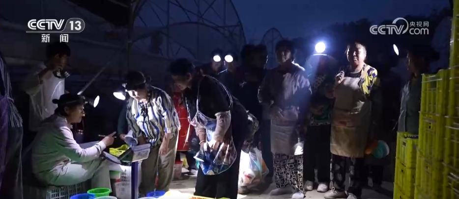 夜幕降臨,趙棚鎮(zhèn)團山村的基質(zhì)藍莓基地卻一片繁忙。記者在基地大棚看到,工人們借著燈光熟練地采摘、打包新鮮藍莓。