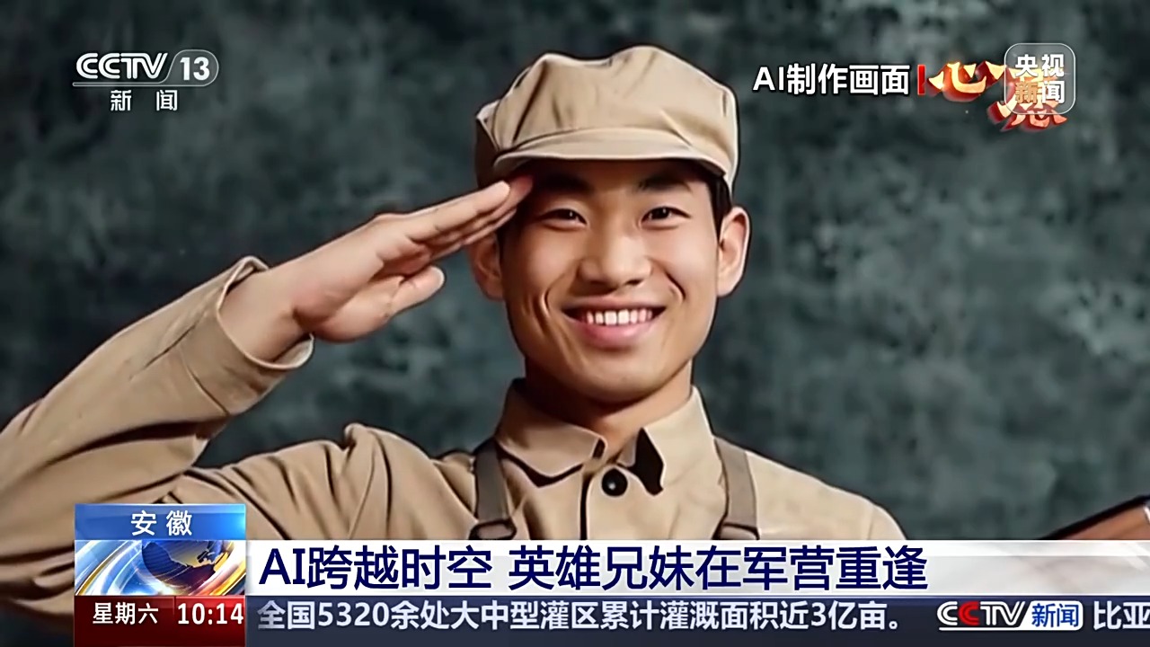 相見,是間隔在生死之間的人們最難以實現(xiàn)的夙愿。總臺記者送給了李家英老人一份特殊的禮物,借助總臺的AI技術(shù),讓同是軍人的兄妹倆在軍營實現(xiàn)了跨越時空的團(tuán)聚。