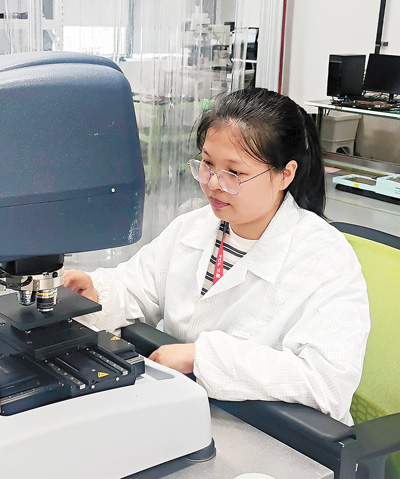 胡素娟利用白光干涉儀測(cè)試膜層。姚文碩攝