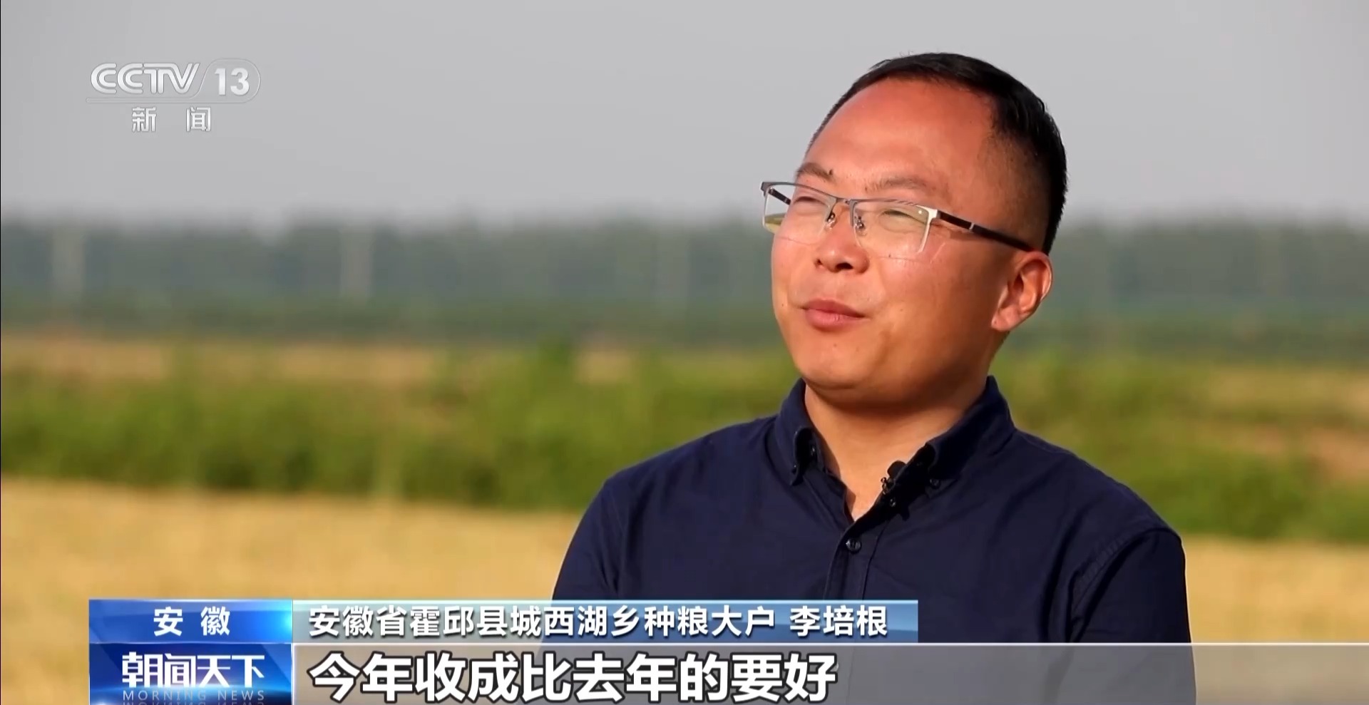 安徽省霍邱縣城西湖鄉(xiāng)種糧大戶 李培根:我們今年種了2000多畝小麥,今年收成要比去年好,每畝地多100多斤,我們一畝地能達(dá)到1100多斤。