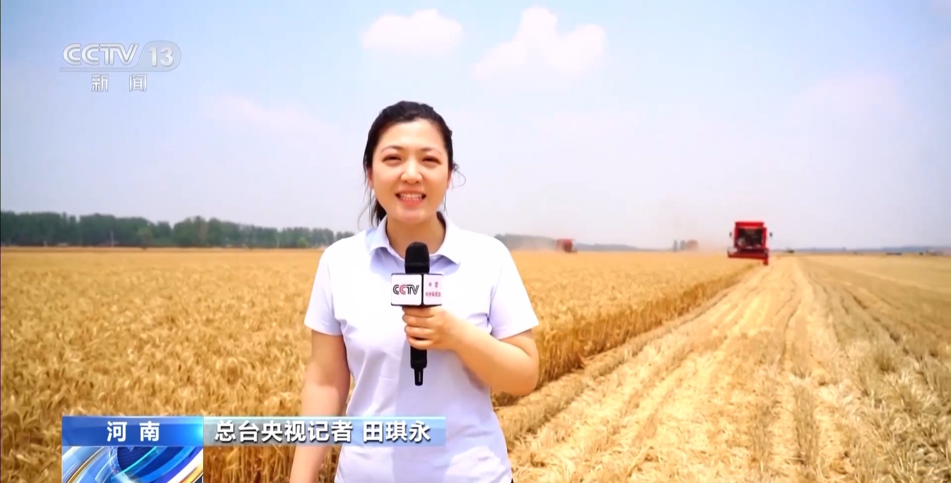 總臺(tái)央視記者 田琪永:我現(xiàn)在是在河南省駐馬店市,目前這里的1100多萬(wàn)畝小麥正大面積集中成熟,當(dāng)?shù)亟M織了3萬(wàn)多臺(tái)聯(lián)合收割機(jī)抓緊搶收,確保小麥?zhǔn)赵谶m收期。