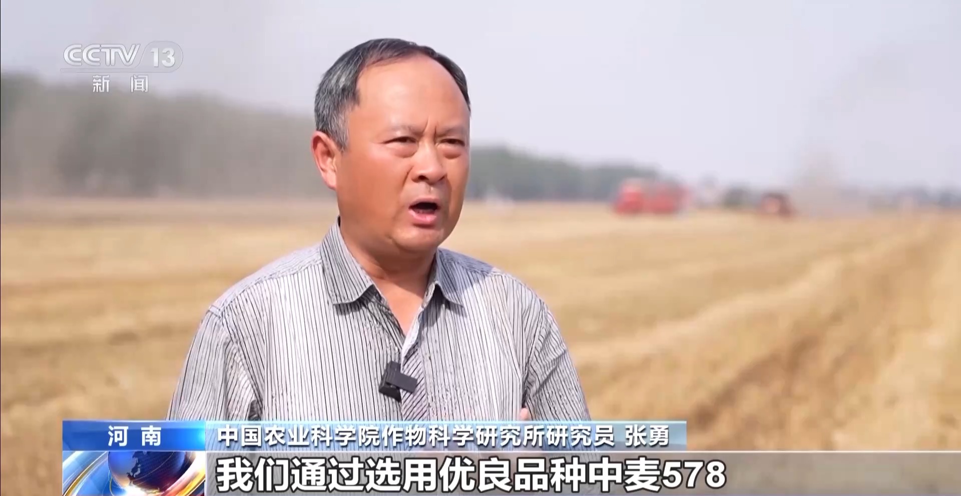中國(guó)農(nóng)業(yè)科學(xué)院作物科學(xué)研究所研究員 張勇:我們通過(guò)選用優(yōu)良品種中麥578,通過(guò)適期的晚播,播前播后鎮(zhèn)壓,一噴三防,每畝比咱們的周邊地塊要增產(chǎn)200斤。