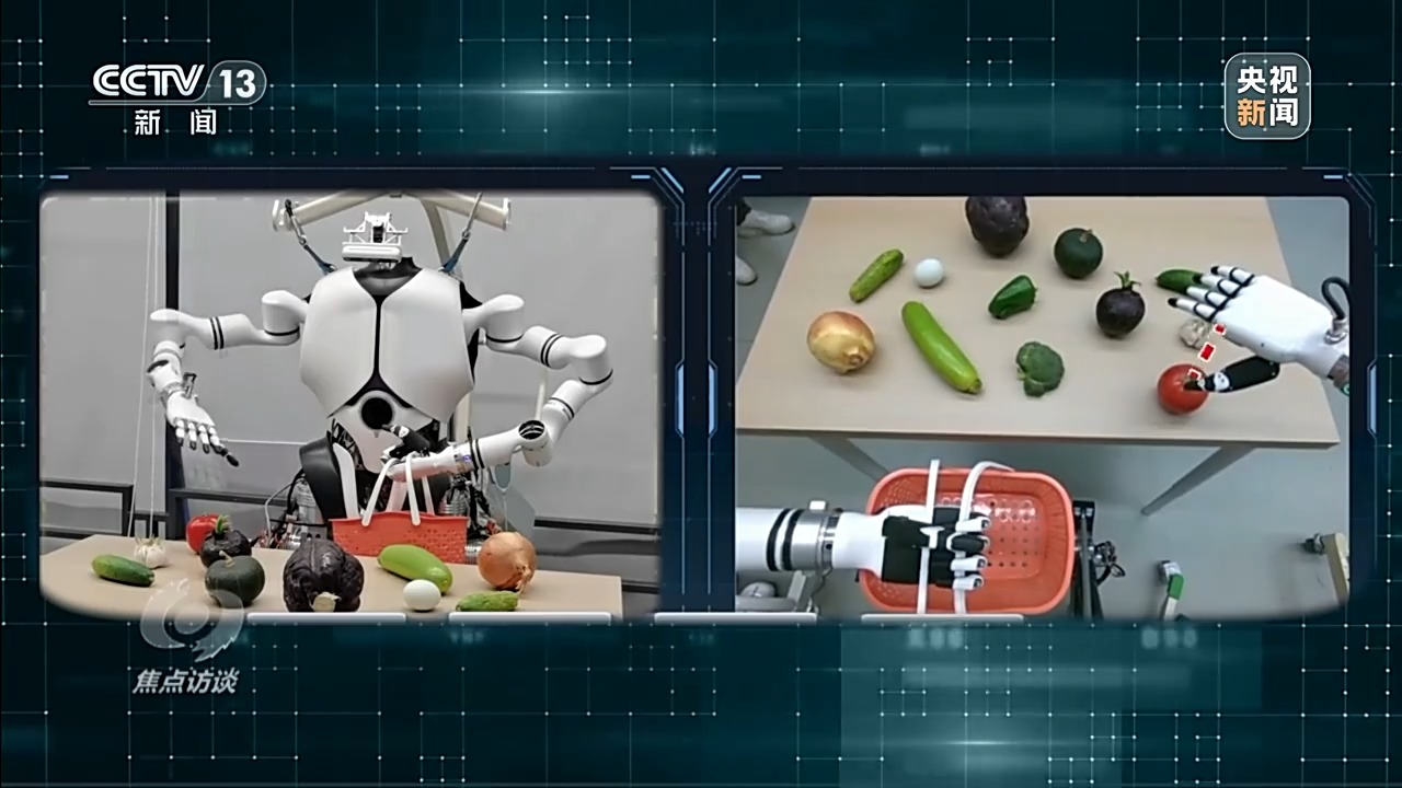 在中國科學(xué)院自動化研究所多模態(tài)人工智能系統(tǒng)全國重點(diǎn)實(shí)驗(yàn)室,科研人員正在對人形機(jī)器人Q5進(jìn)行語言指令和視覺跟隨訓(xùn)練。