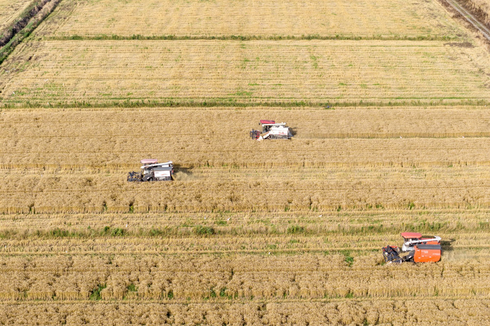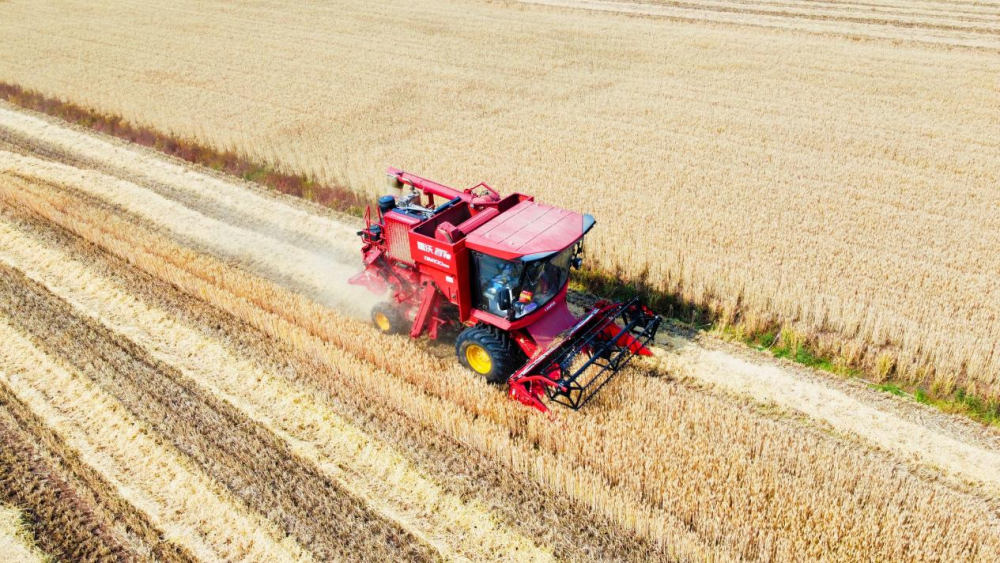 全國“三夏”大規(guī)模小麥機收全面展開。記者在河南、山東、浙江、江蘇等地看到,收割機開足馬力馳騁在麥田中,一排排小麥被整齊地切割、脫?!瓘V袤農田一片繁忙景象。