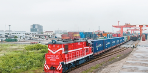一列滿載貨物的海鐵聯運班列從鐵路浙江義烏西站開出,駛向寧波舟山港。胡肖飛攝