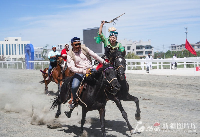 5月31日,中國(guó)·新疆第五屆駱駝產(chǎn)業(yè)展暨全疆賽馬大會(huì)在木壘哈薩克自治縣激情啟幕。活動(dòng)現(xiàn)場(chǎng)在進(jìn)行“姑娘追”表演。常誼誼 攝