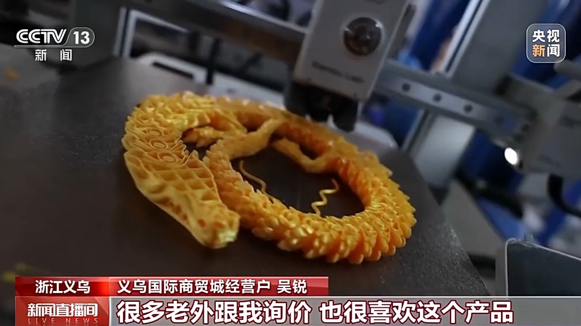 這段時間,在義烏國際商貿(mào)城做3D打印玩具生意的吳銳忙得不可開交,因?yàn)榘雮€月前,店里上架了一批3D打印的端午系列擺件,美國、英國、馬來西亞等國的外貿(mào)訂單紛至沓來。