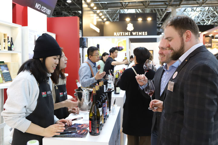 在德國(guó)杜塞爾多夫舉行的2025年杜塞爾多夫葡萄酒與烈酒展上,參觀者品嘗中國(guó)寧夏產(chǎn)區(qū)的葡萄酒(2025年3月16日攝)。