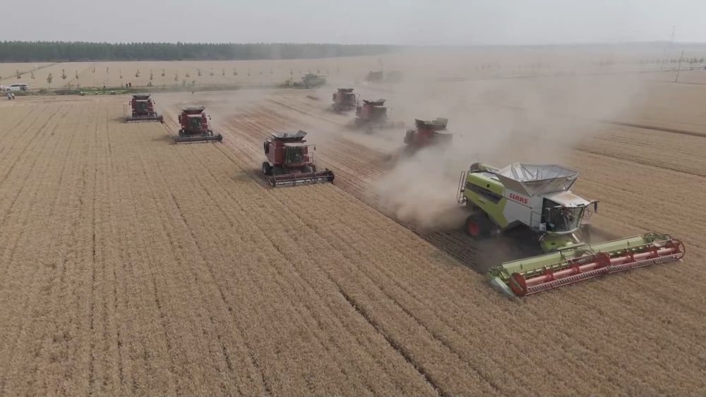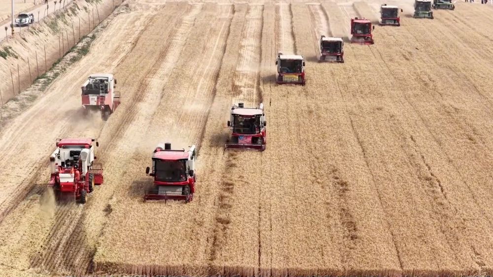 眼下,多地進(jìn)入夏收、夏種、夏管“三夏”農(nóng)忙期,全國(guó)“三夏”大規(guī)模小麥機(jī)收全面展開。收割機(jī)開足馬力馳騁在金色的麥田中,一排排小麥被整齊地切割、脫?!瓘V袤農(nóng)田一片繁忙景象。
