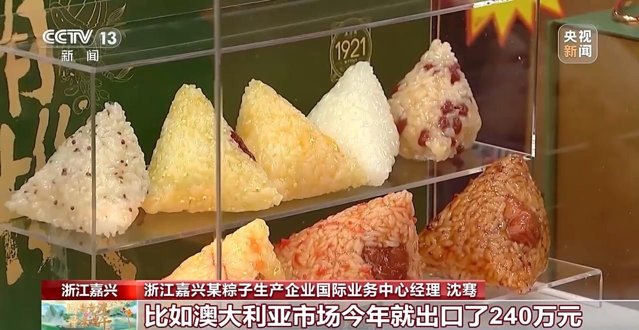 浙江嘉興某粽子生產(chǎn)企業(yè)國(guó)際業(yè)務(wù)中心經(jīng)理 沈騫:今年,我們開發(fā)了純植物餡料的素食粽子、低糖粽等細(xì)分品類,今年以來已經(jīng)累計(jì)出口了250余萬(wàn)只粽子。東南亞是主要市場(chǎng),我們還開拓了加拿大、澳大利亞、新西蘭等10多個(gè)國(guó)家和地區(qū),比如澳大利亞市場(chǎng)今年就出口了240萬(wàn)元,增長(zhǎng)比較明顯。