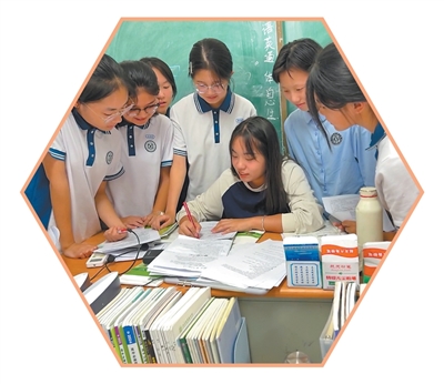 北京師范大學“優(yōu)師計劃”師范生張然(中)在實習時為學生講解輔導。 北京師范大學供圖