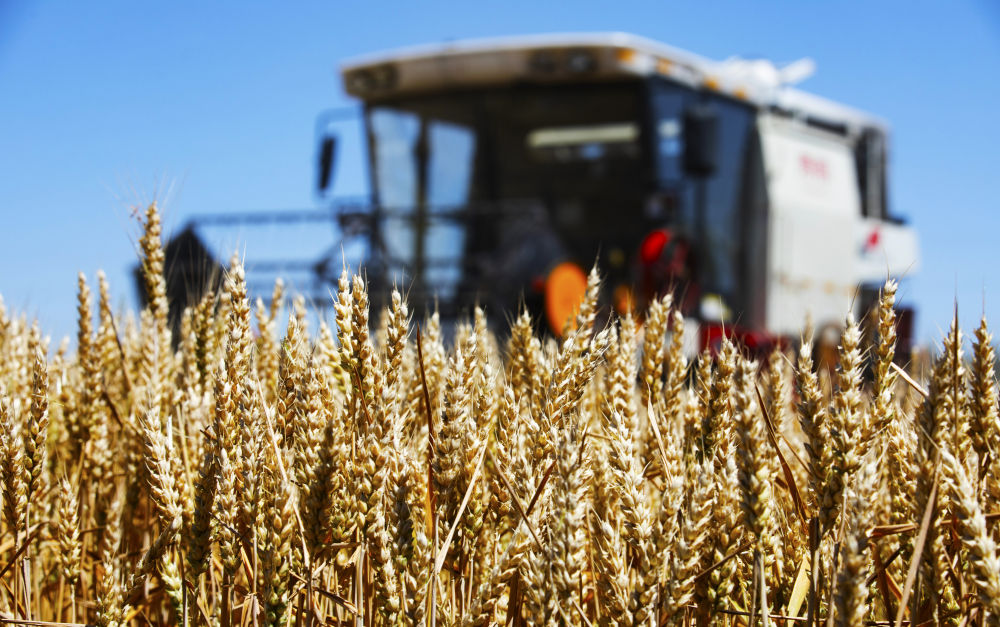 “今年我們的小麥整體來看,品質(zhì)還是不錯的,測下來基本上能達到一等小麥品質(zhì)了。”楊曉飛說,今年22000余畝小麥能穩(wěn)產(chǎn)提質(zhì),與科學(xué)管理密不可分?!敖衲晏鞖獗容^旱,但是經(jīng)過兩次灌水,我們用噴灌機微噴,中間我們進行了一噴三防,包括后期干熱風(fēng),政府指導(dǎo)我們使用一些抗旱劑。整體今年感覺穗子還不錯,籽粒也比較飽滿。目前收下來之后我們看,畝產(chǎn)量都上1000斤了,比我們預(yù)想中要好多了。”