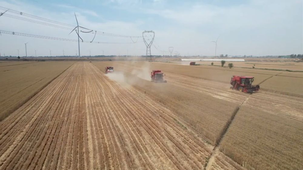 麥浪滾滾,機聲隆隆。在河南省鶴壁市淇縣5G數(shù)字農(nóng)業(yè)示范園,3000多畝高標(biāo)準(zhǔn)農(nóng)田猶如金色的海洋,大型聯(lián)合收割機在田間來回穿梭,呈現(xiàn)出一幅喜人的現(xiàn)代農(nóng)業(yè)豐收圖景。