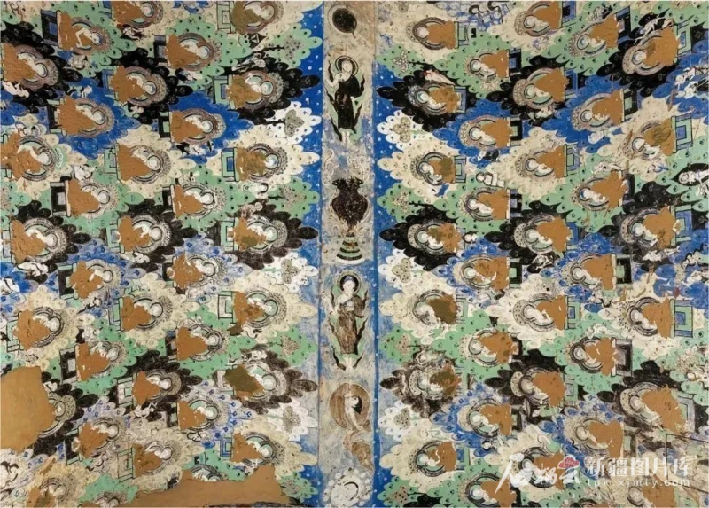 敦煌莫高窟203窟,兩側(cè)墻壁上排列密集的小佛像,與龜茲壁畫異曲同工。資料圖。