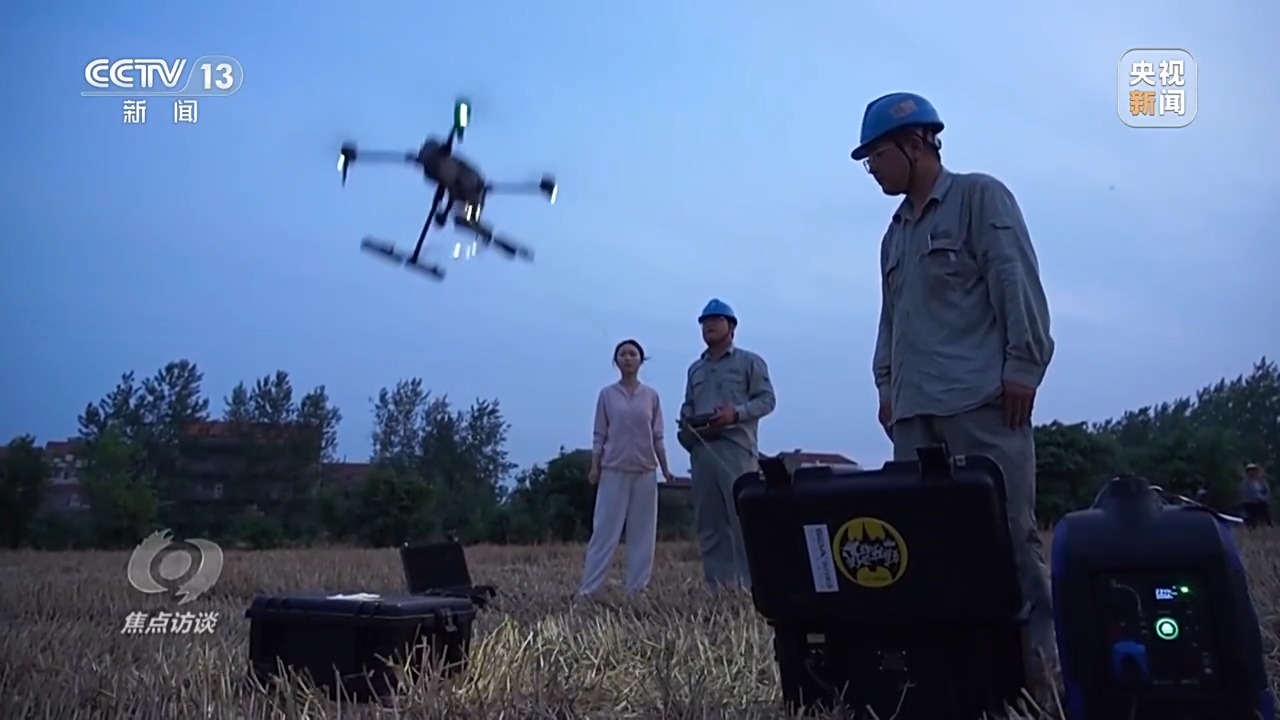 像放風(fēng)箏一樣,一個(gè)人從供電機(jī)牽線,另一個(gè)人控制無(wú)人機(jī)飛行,兩人打好配合,燈隨著車(chē)走。經(jīng)過(guò)五次磨合試飛,600瓦的燈光終于刺破夜空,照亮了兩畝麥田的區(qū)域。供電所技術(shù)人員的駐守,讓吳從先家的小麥在暴雨來(lái)臨前全部入倉(cāng)。