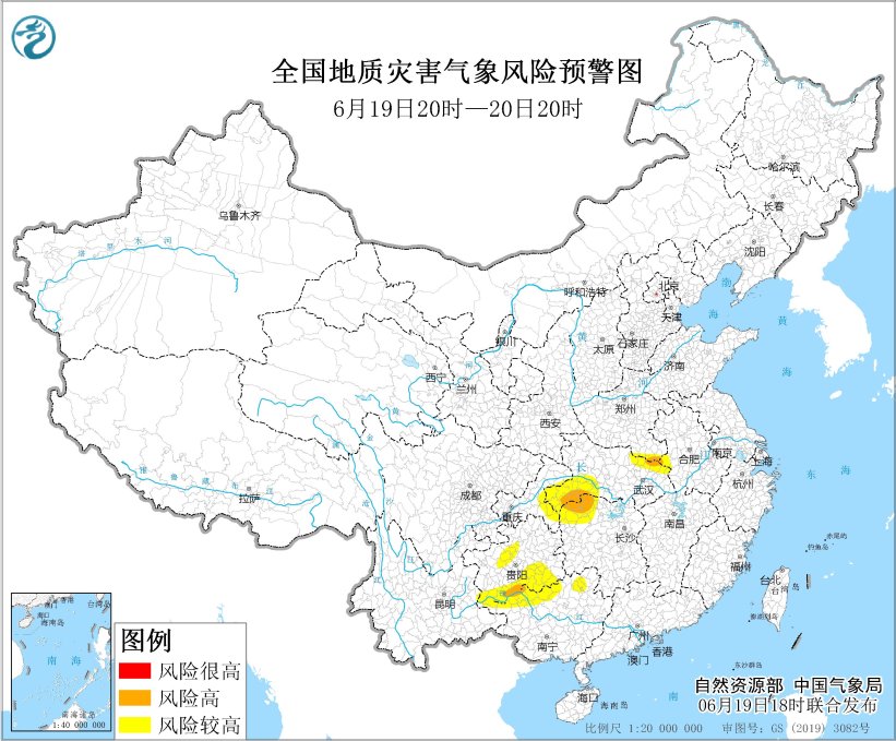 自然資源部與中國氣象局同一時間聯(lián)合發(fā)布地質(zhì)災(zāi)害氣象風(fēng)險預(yù)警,預(yù)計19日20時至20日20時,安徽西部、河南南部、湖北東北部和西南部、湖南西北部、廣西北部、重慶東部、貴州西部和南部、云南東部等地部分地區(qū)發(fā)生地質(zhì)災(zāi)害的氣象風(fēng)險較高(黃色預(yù)警)。其中,安徽西部、河南南部、湖北東北部和西南部、湖南西北部、廣西北部、貴州南部等地部分地區(qū)發(fā)生地質(zhì)災(zāi)害的氣象風(fēng)險高(橙色預(yù)警),需做好地質(zhì)災(zāi)害防御工作。