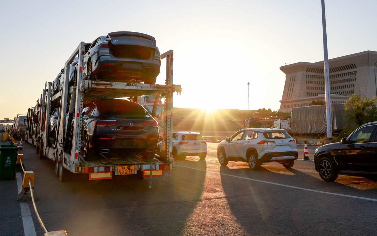 這是2025年5月27日在新疆霍爾果斯公路口岸拍攝的等待驗(yàn)放的車輛。(圖片來源:新華社)
