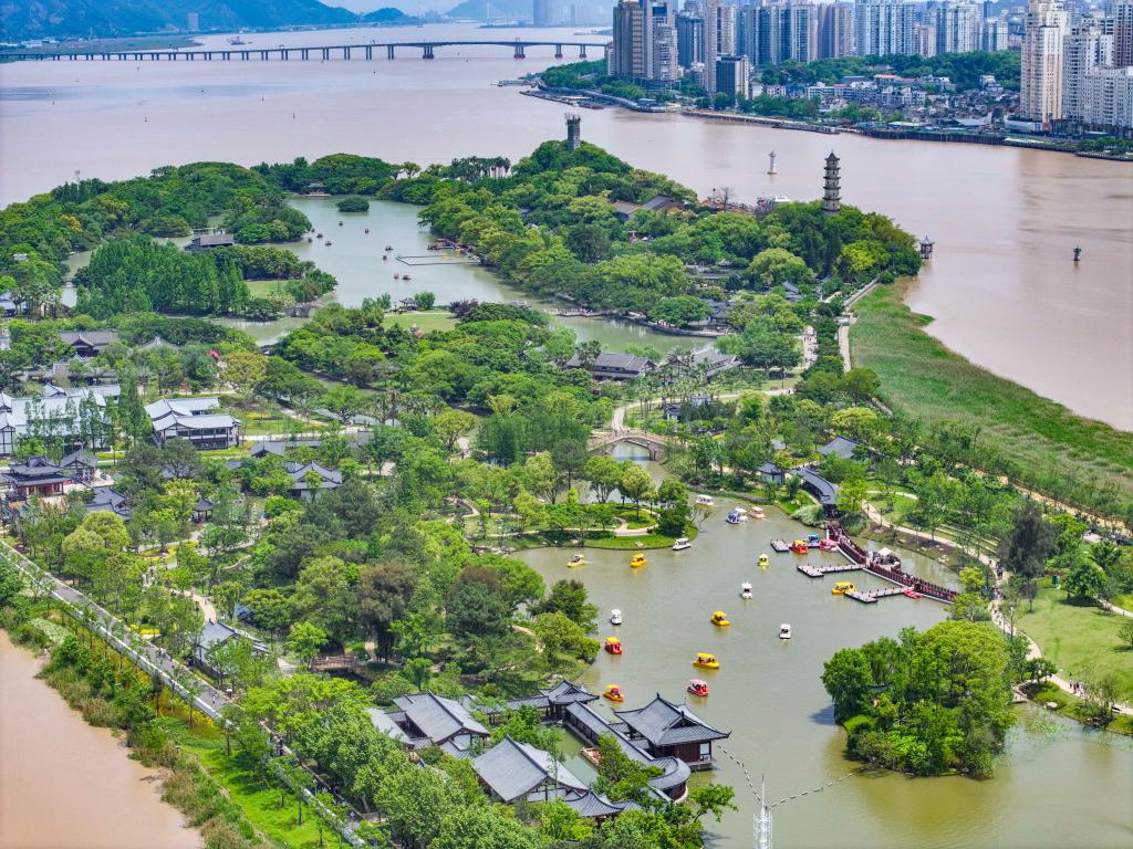 浙江省溫州市鹿城區(qū)江心嶼景區(qū)(無人機照片,2025年5月1日攝)。新華社發(fā)(蘇巧將攝)