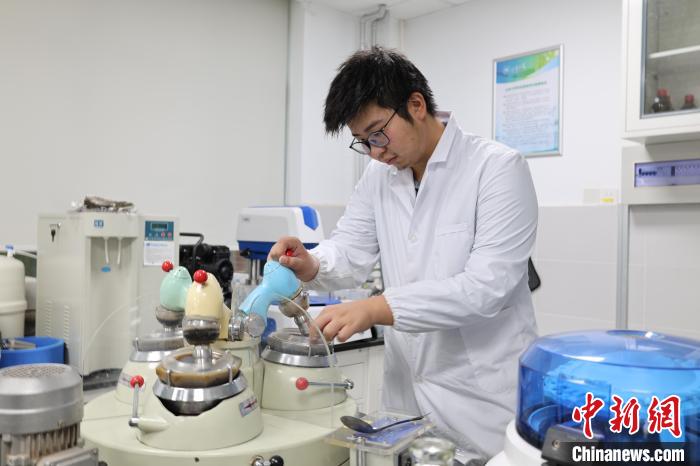 潘志威在學(xué)校陶瓷器考古實(shí)驗(yàn)室使用研磨器。趙曉 攝