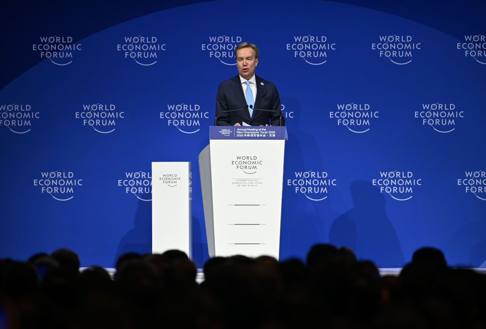 6月25日,在國家會展中心(天津),世界經(jīng)濟(jì)論壇總裁博爾格·布倫德在開幕式上發(fā)言。新華社記者 孫凡越 攝
