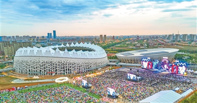 安徽省蕪湖市峨山鎮(zhèn)的繁昌人民體育公園內,人們在觀看音樂節(jié)表演。