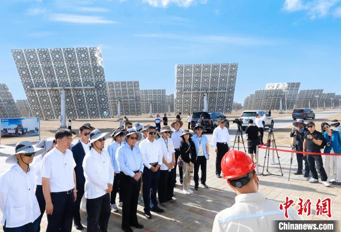 6月27日,中國(guó)國(guó)民黨前主席馬英九率臺(tái)灣青年一行,參訪首航高科能源技術(shù)股份有限公司在敦煌建設(shè)的100兆瓦熔鹽塔式光熱電站。 尹賽楠 攝