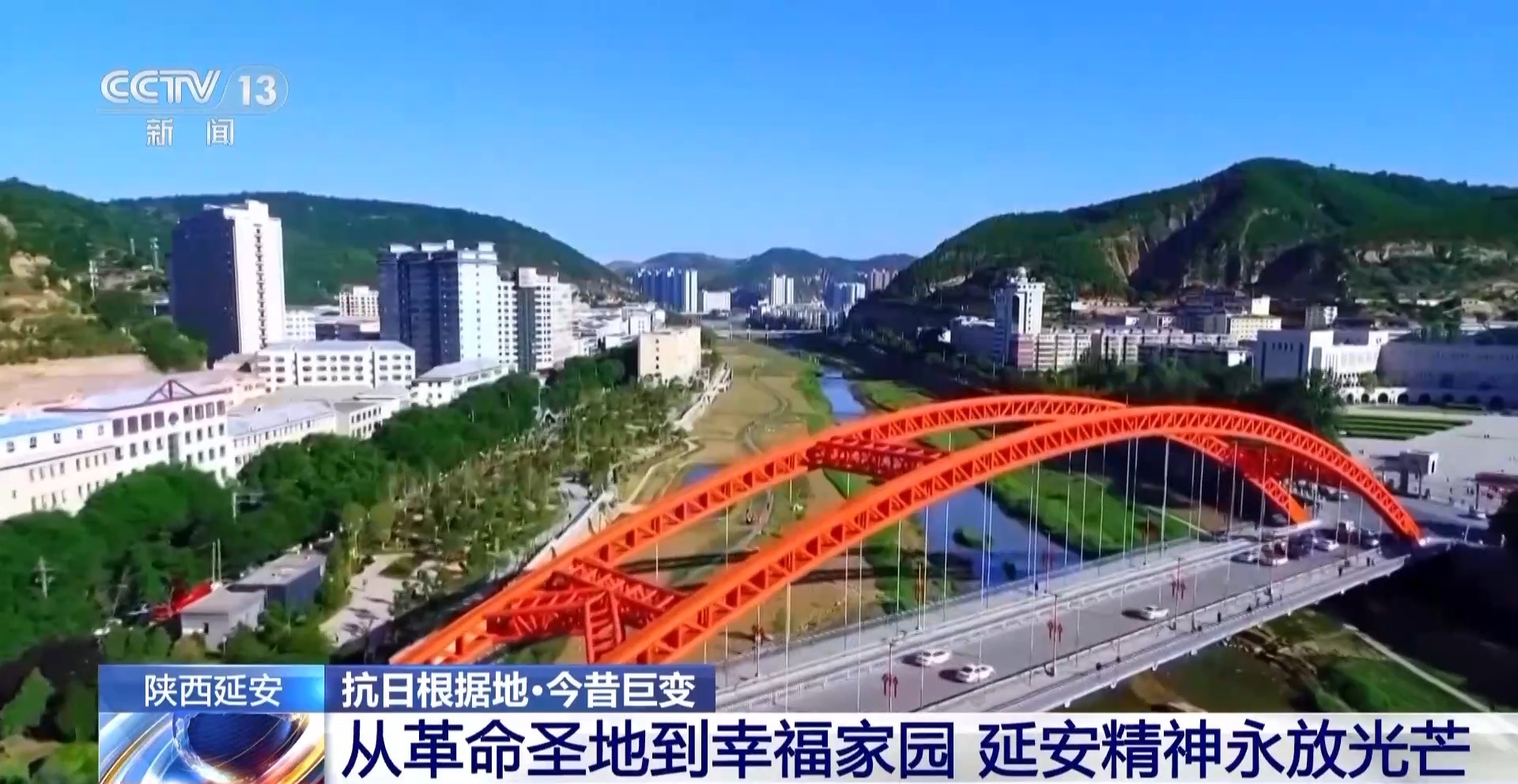 說到延安,很多人自然就會想到巍巍寶塔山,這張照片就是拍攝于80多年前的寶塔山上。當(dāng)時,城里大多是低矮的平房。如今從同一個位置俯瞰,這里已經(jīng)發(fā)生了翻天覆地的巨變——延河兩岸,高樓大廈拔地而起,鱗次櫛比的現(xiàn)代化新城矗立眼前。
