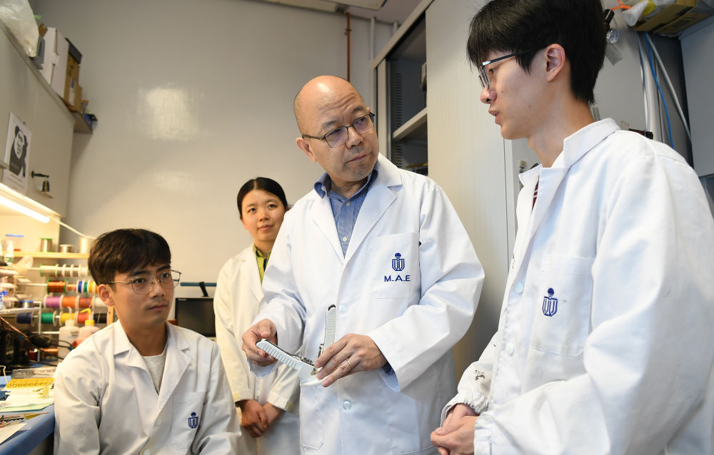 6月11日,香港太空機(jī)械人與能源中心聯(lián)合主任于宏宇教授(右)與團(tuán)隊(duì)成員交流。新華社記者 陳鐸 攝