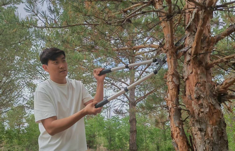 2017年,在爺爺?shù)膸ьI(lǐng)下,石健陽(yáng)正式投身植綠事業(yè)。“過(guò)去沙害嚴(yán)重,老一輩治沙人最迫切的是要定住風(fēng)沙,讓地面先綠起來(lái),所以當(dāng)時(shí)的樹(shù)種主要是生長(zhǎng)快的楊樹(shù)。”石健陽(yáng)說(shuō),“幾十年過(guò)去,楊樹(shù)林老化嚴(yán)重,出現(xiàn)大面積枯死的情況。我們現(xiàn)在陸續(xù)對(duì)老化的林地進(jìn)行樹(shù)種更換,補(bǔ)種四季常青、生命周期更長(zhǎng)的樟子松,目前已經(jīng)補(bǔ)種了5萬(wàn)畝?!?/p>