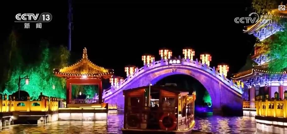 在河南開封,游客能坐船體驗“宋朝人的一天”,船上設有互動詩詞小游戲,市內(nèi)的八大景區(qū)通過汴河水道“串珠成鏈”,吸引游客參與其中。