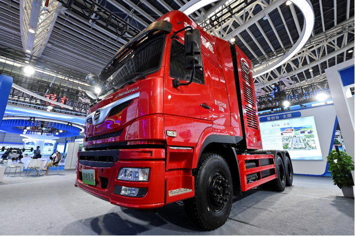 在2024中國(太原)國際能源產(chǎn)業(yè)博覽會上拍攝的氫能重卡。新華社記者 楊晨光 攝