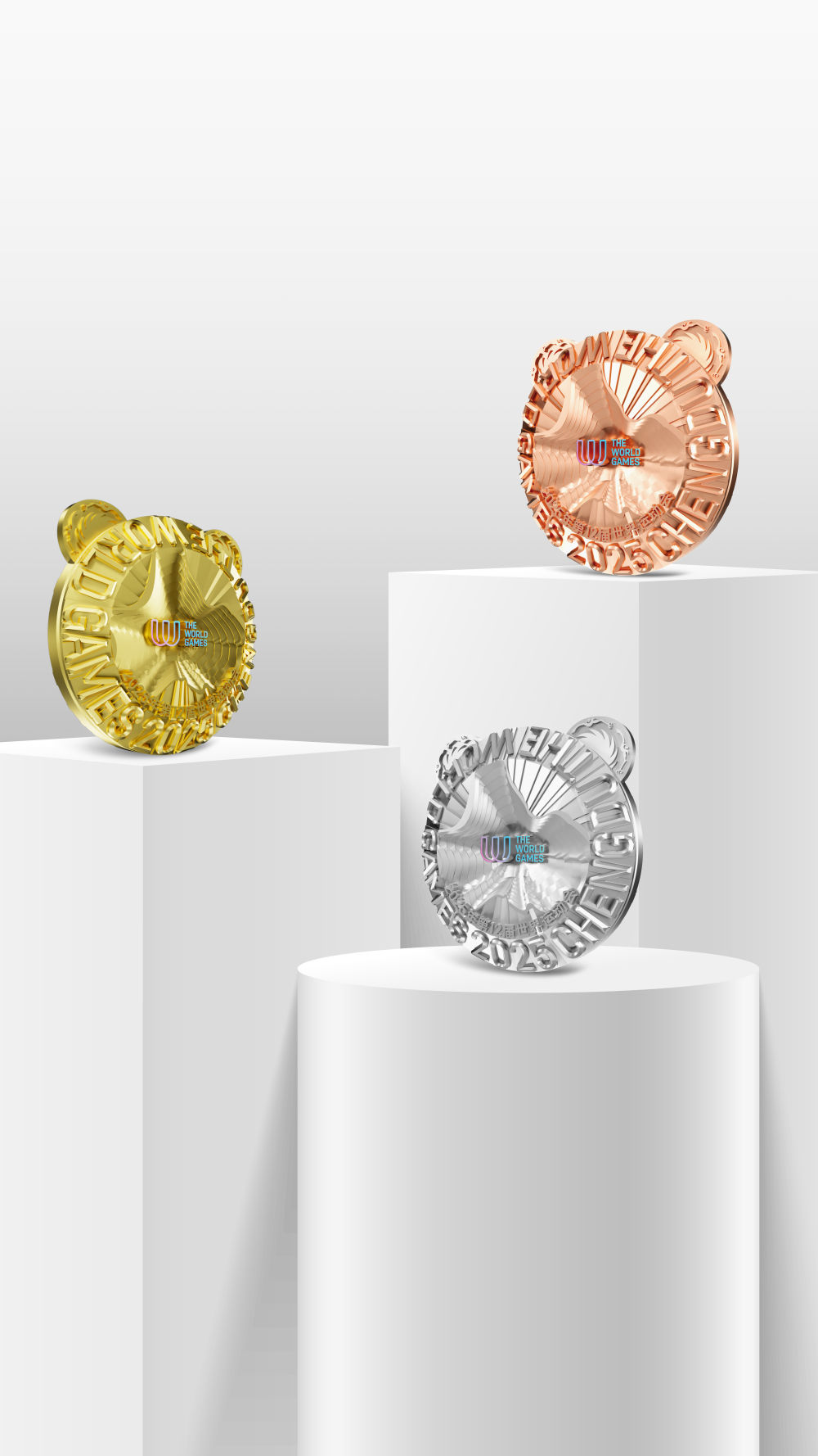 這是成都世運(yùn)會(huì)金、銀、銅牌效果圖。6月19日,2025年第12屆世界運(yùn)動(dòng)會(huì)獎(jiǎng)牌“竹光”正式亮相。新華社發(fā)(成都世運(yùn)會(huì)執(zhí)委會(huì)供圖)