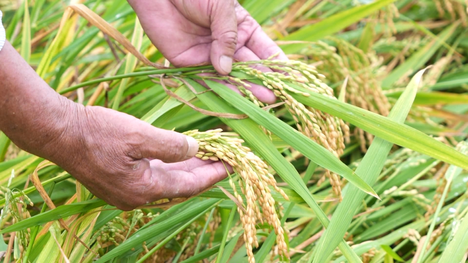 周永乾是當?shù)胤N糧大戶,共種植600多畝水稻,受本次臺風影響,95%以上的水稻出現(xiàn)倒伏,損失不少。