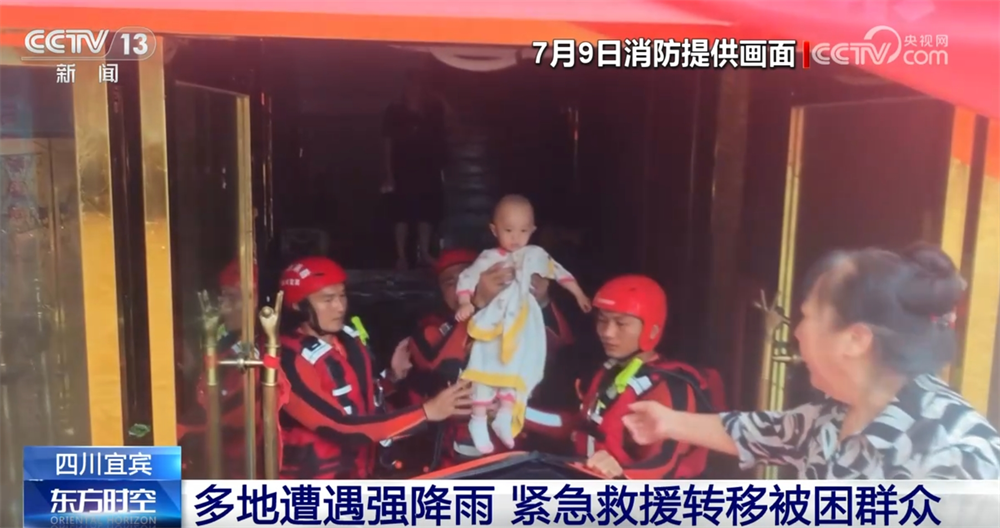 在宜賓珙縣上羅鎮(zhèn),街道積水已經(jīng)有一米多深,部分地方積水已淹沒一樓,有不少群眾被困,救援人員在齊腰深的積水中采取接力方式轉移被困群眾。在一樓淹沒區(qū)域,消防救援人員通過架設爬梯,將被困在二樓的群眾轉移至橡皮艇,送往安全區(qū)域。強降雨還導致珙縣曹營鎮(zhèn)、羅渡苗族鄉(xiāng)等地出現(xiàn)大范圍停電,部分道路因積水無法通行,通信出現(xiàn)異常。