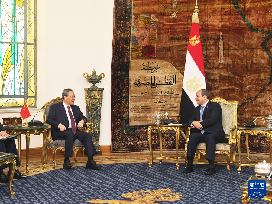 李強(qiáng)首先轉(zhuǎn)達(dá)習(xí)近平主席對(duì)塞西總統(tǒng)的親切問(wèn)候。李強(qiáng)表示,近年來(lái),在兩國(guó)元首戰(zhàn)略引領(lǐng)下,中埃關(guān)系蓬勃發(fā)展。中方愿同埃方一道,以明年中埃建交70周年為契機(jī),賡續(xù)傳統(tǒng)友誼,鞏固政治互信,在涉及彼此核心利益問(wèn)題上繼續(xù)堅(jiān)定相互支持,不斷豐富中埃全面戰(zhàn)略伙伴關(guān)系內(nèi)涵,推動(dòng)兩國(guó)各領(lǐng)域合作取得更多成果,朝著構(gòu)建面向新時(shí)代的中埃命運(yùn)共同體的目標(biāo)持續(xù)邁進(jìn)。