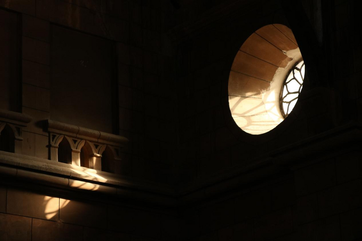 走進安里甘,我最先注意到的就是那漂亮的哥特式建筑風格。教堂不大,設計融合英國鄉(xiāng)村教堂特點,閃閃發(fā)亮的劍形花窗在陰影里投下細長的光影,將自然光主要集中于祭臺區(qū)域。地面光色溫柔,尖券的拱門與6個石柱形成美妙的對話,整個空間維持在非常舒適的閾值之中。置身在這樣一個陰影與光線完美貼合的藝術中心,是一種美的享受。