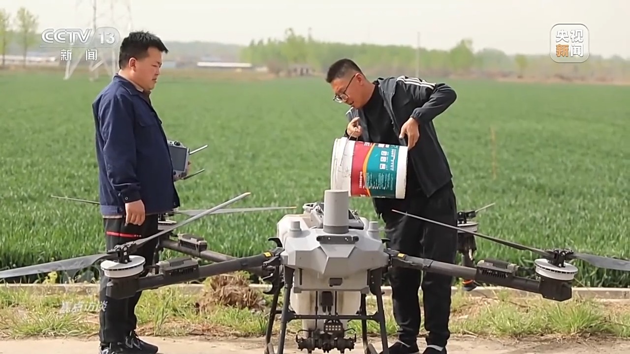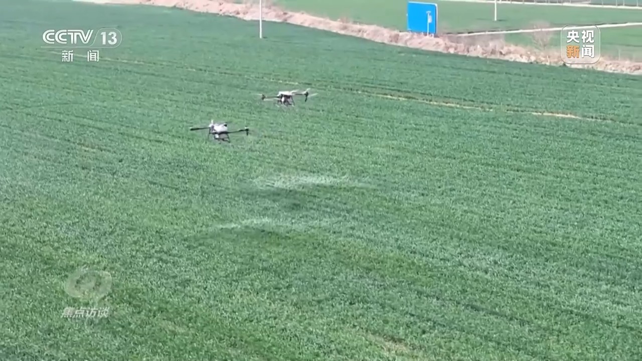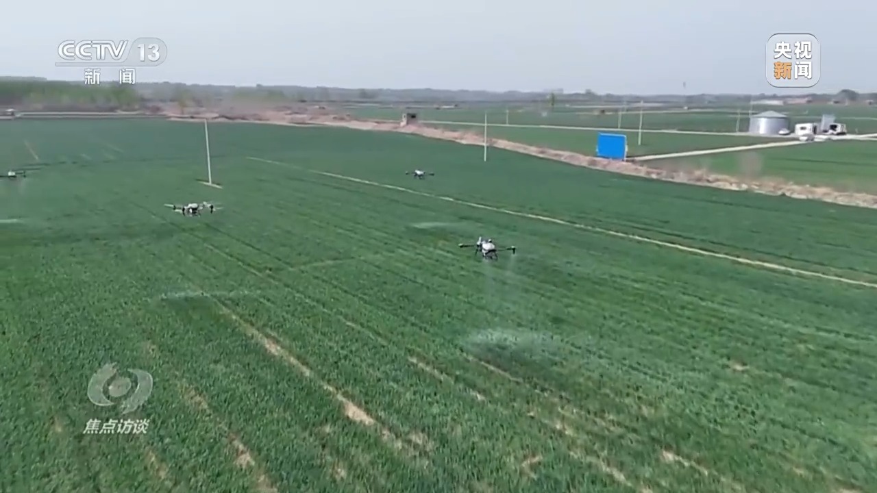5月17日,40攝氏度高溫天氣到來的前兩天,當(dāng)?shù)囟鄠€小麥主產(chǎn)縣,一臺臺植保無人機(jī)低空掠過綠浪翻滾的麥穗,噴灑出細(xì)密的“藥雨、肥雨”,為久旱的麥田送來了及時雨。