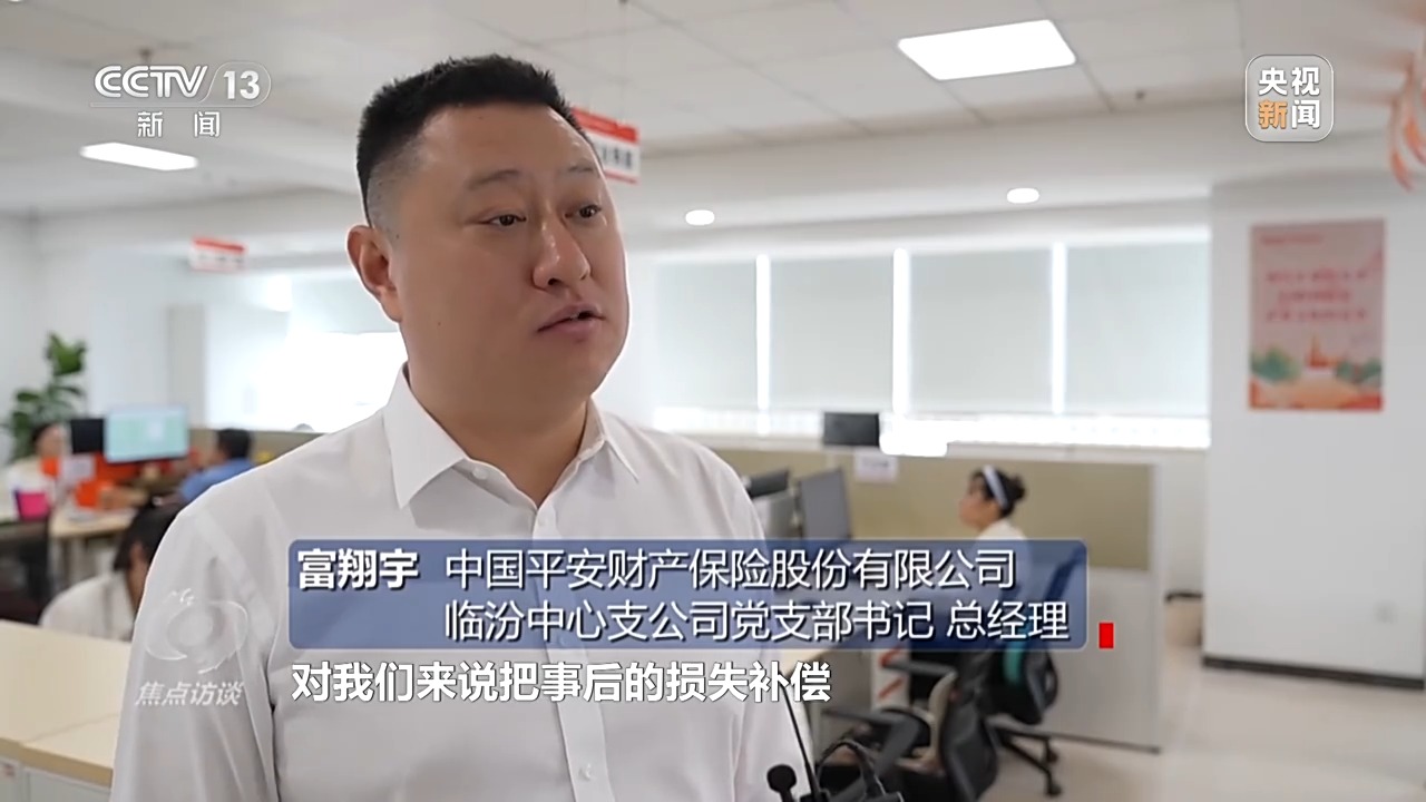 中國平安財產(chǎn)保險股份有限公司臨汾中心支公司黨支部書記、總經(jīng)理 富翔宇:老百姓的產(chǎn)量有保證了,對我們來說把事后的損失補(bǔ)償調(diào)整到事中的風(fēng)險減量工作,對我們的整體成本控制也是有很大幫助的。
