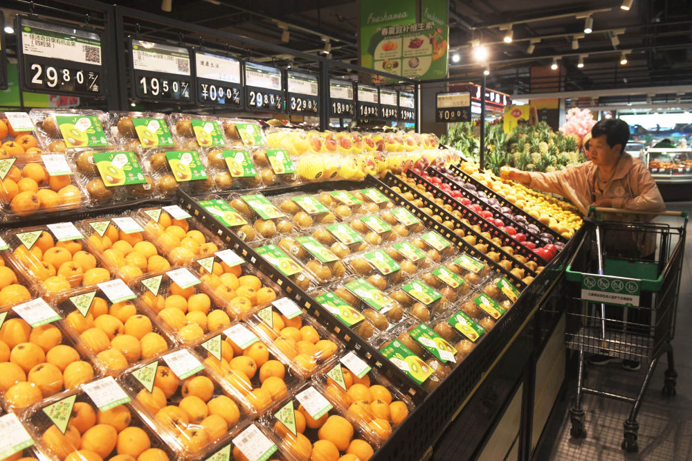 6月9日,顧客在河北省石家莊新樂市一家超市選購水果。新華社發(fā)(賈敏杰攝)