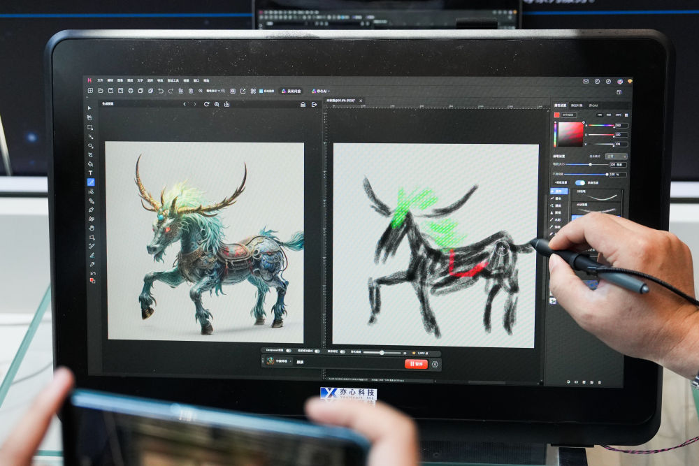 6月20日,在北京石景山區(qū)中關(guān)村科幻產(chǎn)業(yè)創(chuàng)新中心,工作人員展示悟空圖像軟件的AIGC功能。新華社記者 鄭煥松 攝